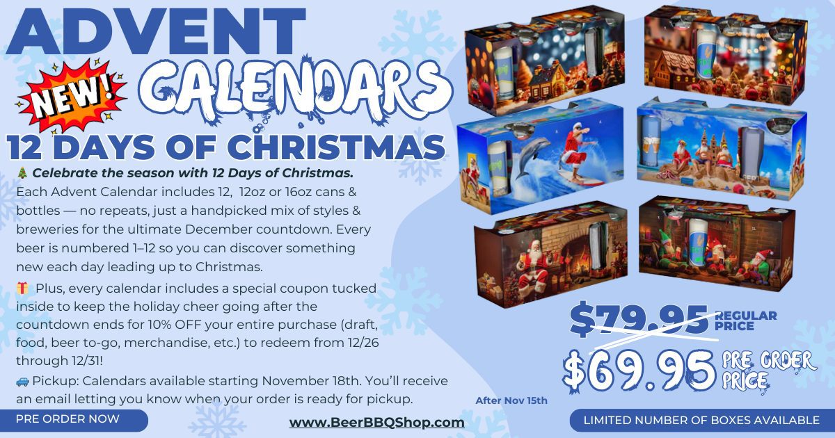 We work with our local self-distributing breweries & wholesalers to select the latest, greatest & all around best beers to bring joy to those who are lucky enough to snag Beer BBQβs β12 Days of Christmasβ Advent Calendar!